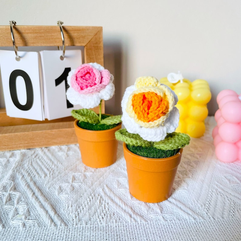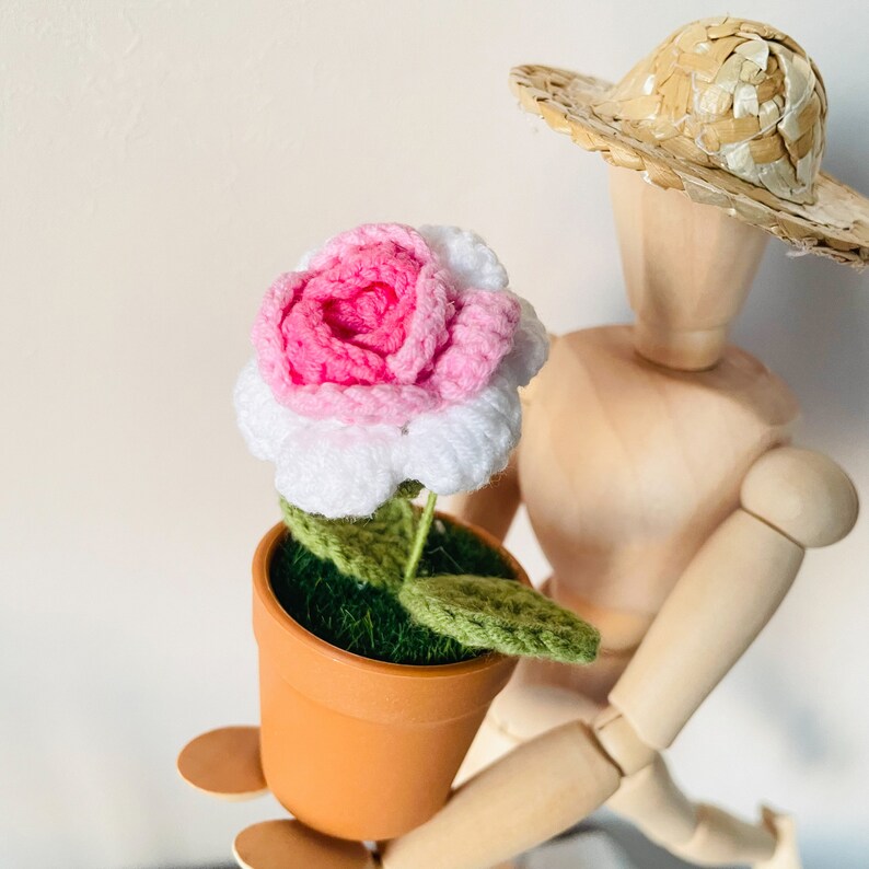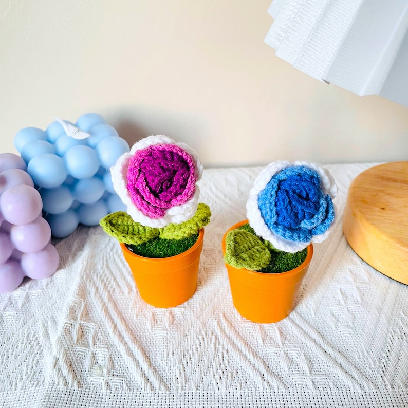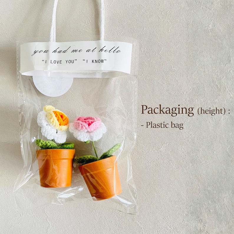 Hãy thêm chút quyến rũ thủ công vào cuộc sống của bạn hoặc mang đến niềm vui cho người thân yêu với bó hoa hồng len thủ công trong chậu nhựa xinh xắn của chúng tôi. Đặt ngay hôm nay để tạo nên những khoảnh khắc đáng nhớ!