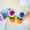 - Thiết kế chậu tinh tế: Chậu nhựa nhỏ gọn và đầy màu sắc, hài hòa với hoa len, tạo nên điểm nhấn trang trí ấn tượng.
