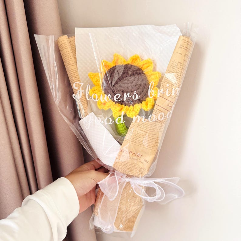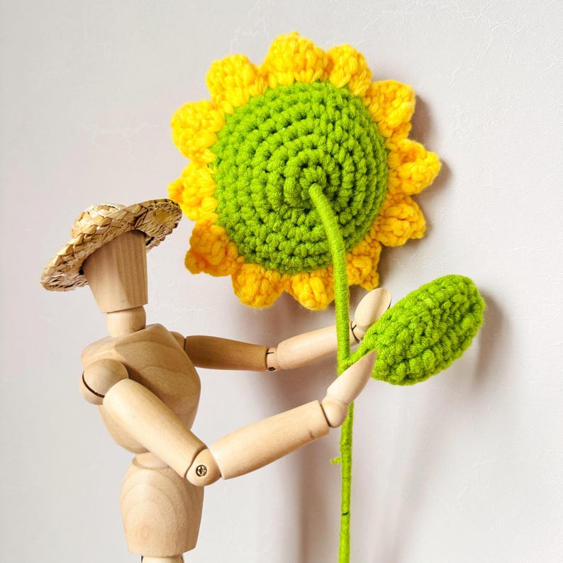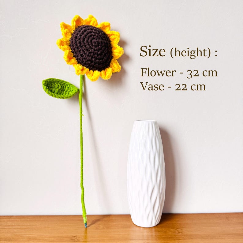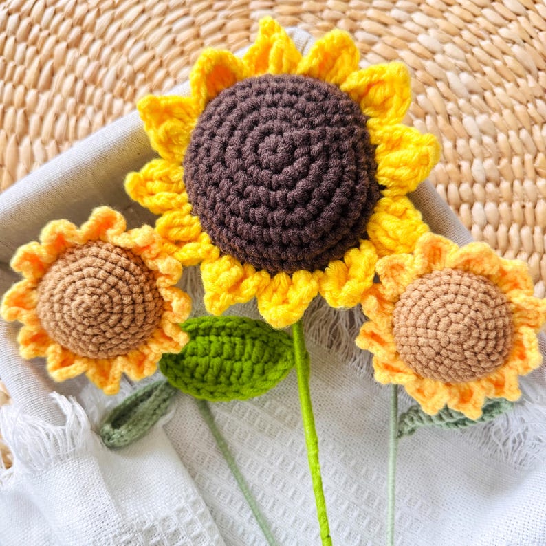 Hãy thêm bông hoa hướng dương len thủ công tuyệt đẹp này vào bộ sưu tập trang trí của bạn hoặc tặng nó để mang niềm vui và nghệ thuật đến mọi ngôi nhà!
