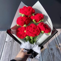 Bó hoa len móc cô dâu chú rể 30×20 cm, hồng trắng
