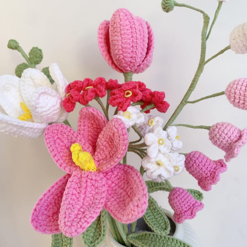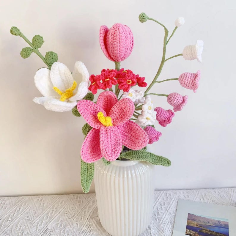 Mang không khí ấm áp mùa lễ hội vào ngôi nhà bạn với bó hoa len móc lily & cúc bền đẹp, không héo, dễ phối nhiều không gian. Bó hoa gồm 6 bông đan móc tỉ mỉ, tạo điểm nhấn trang trí Noel và quà tặng tinh tế cho bạn bè, người thân.