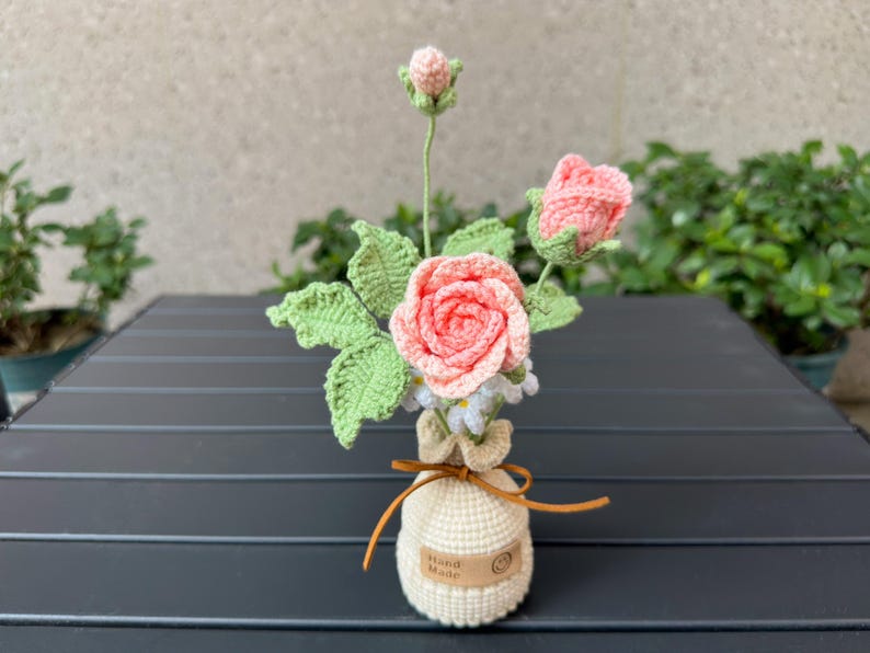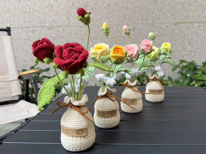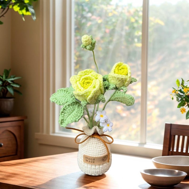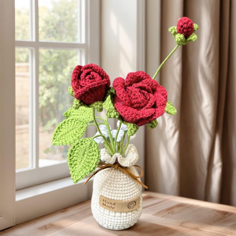 Thêm một nét chấm phá lãng mạn và ấm cúng cho không gian của bạn với Chậu hoa hồng len thủ công của knitwoolvn. Tác phẩm tinh xảo này không chỉ là một món đồ trang trí đẹp mắt mà còn là món quà hoàn hảo, gói trọn sự quan tâm và tình cảm bền lâu.