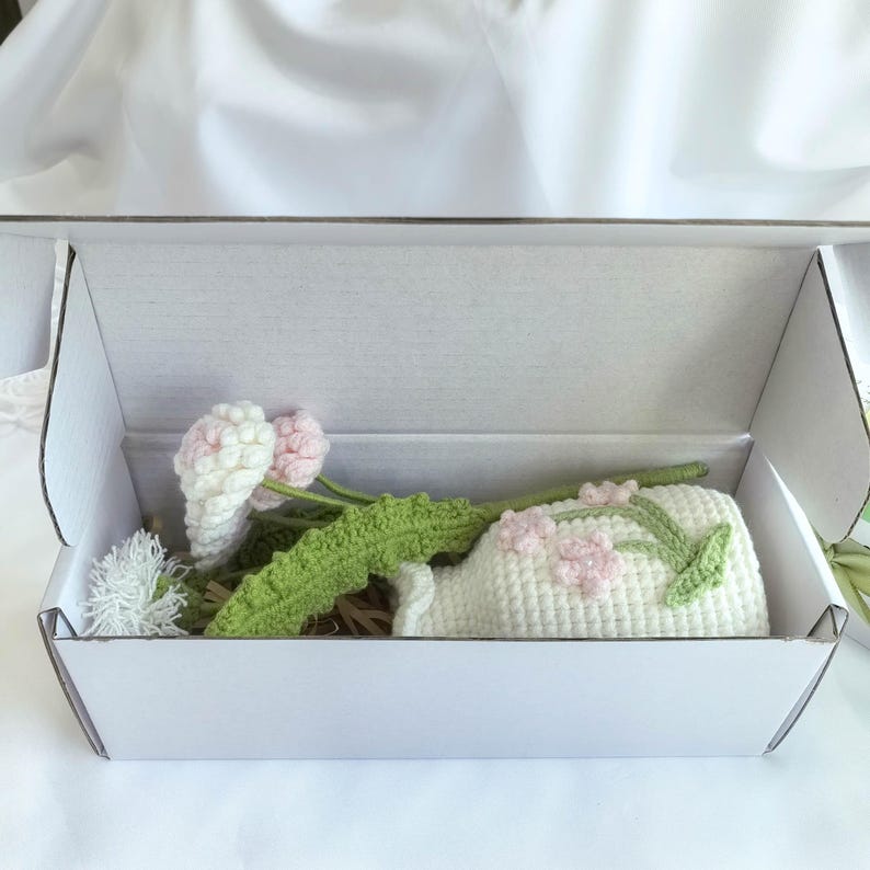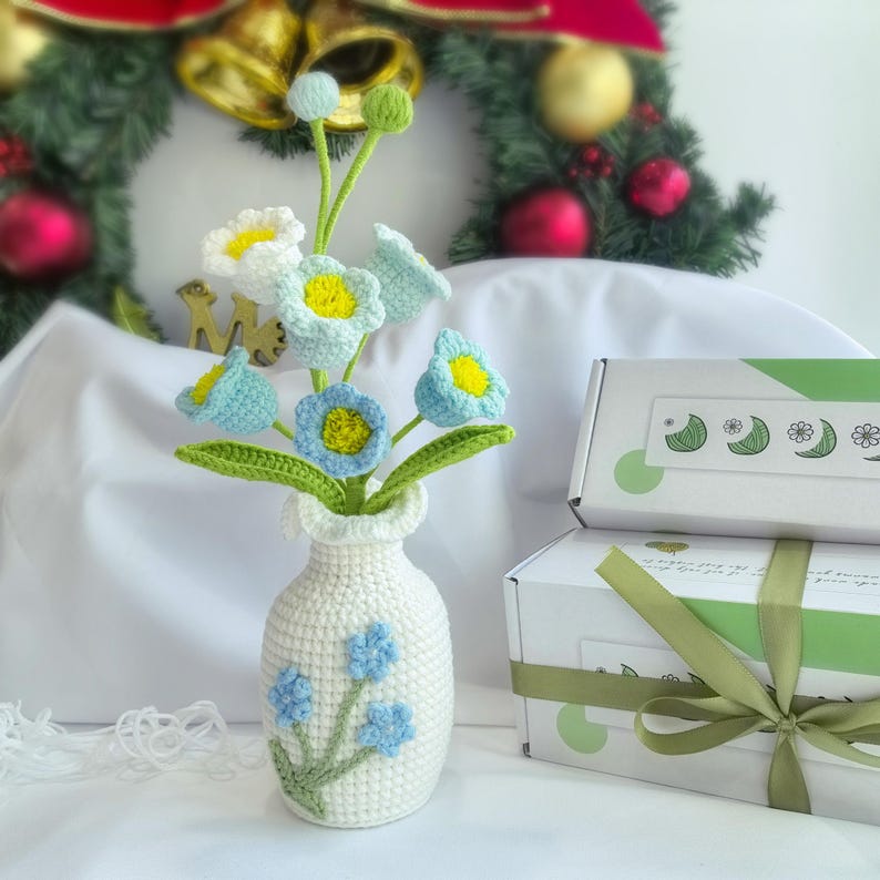 Hoa Crochet Nhiều Loại từ Knitwoolvn – mang đến vẻ đẹp tinh tế và quyến rũ cho không gian sống của bạn. Hãy tưởng tượng một bó hoa xinh xắn, được làm hoàn toàn thủ công từ những sợi chỉ mềm mại, với sắc màu tươi tắn của cúc dại vàng rực rỡ, bông bạch tuyết trắng tinh khôi và những bông hoa chuông nhỏ nhắn đáng yêu. Mỗi bông hoa đều được chăm chút tỉ mỉ, tạo nên một tác phẩm nghệ thuật nhỏ xinh, đầy sức sống.