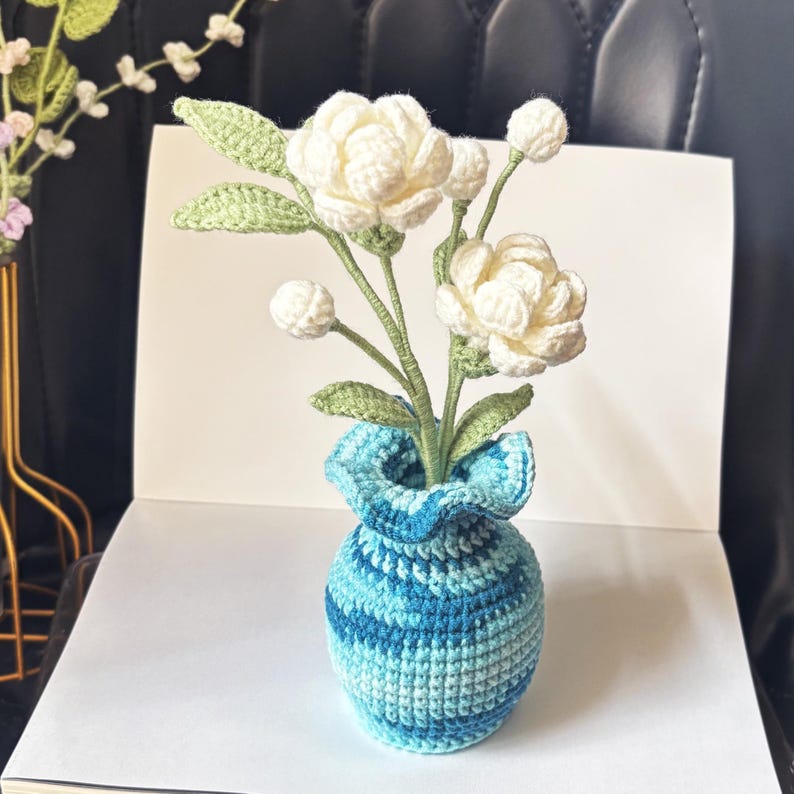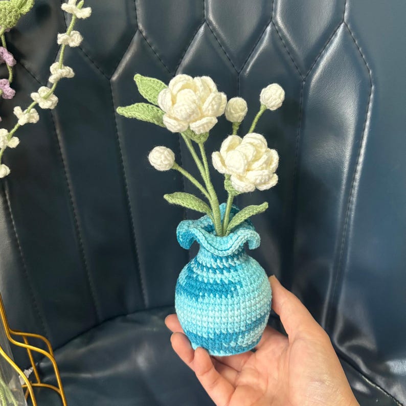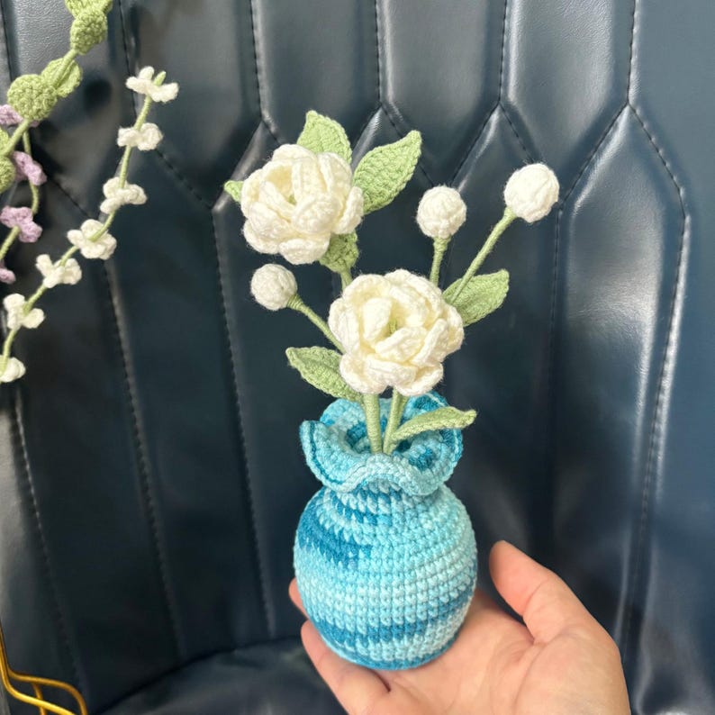 Hoa hồng trắng crochet tinh tế của Knitwoolvn, được đặt khéo léo trong một chiếc lọ xanh thanh lịch, tượng trưng cho sự thuần khiết và tình yêu vĩnh cửu – món quà hoàn hảo cho đám cưới, kỷ niệm, hoặc ngày Valentine. Mỗi bông hoa được làm thủ công tỉ mỉ trong nhiều giờ, đảm bảo sự độc đáo và quyến rũ riêng biệt. Hình ảnh hoa hồng nở rộ, từng cánh hoa mềm mại được tạo nên từ những mũi kim khéo léo, toát lên vẻ đẹp tự nhiên và tinh tế. Màu trắng tinh khôi của hoa tạo nên sự tương phản hài hòa với màu xanh nhẹ nhàng của chiếc lọ, mang đến một tổng thể trang nhã và ấm áp. Do sự khác biệt về ánh sáng và chụp ảnh, sản phẩm thực tế có thể hơi khác so với hình ảnh, làm tăng thêm vẻ độc đáo của một món quà thủ công đặc biệt. Thích hợp cho những người mua hàng có ý thức về môi trường, tìm kiếm đồ trang trí hoặc quà tặng bền vững và chân thành.