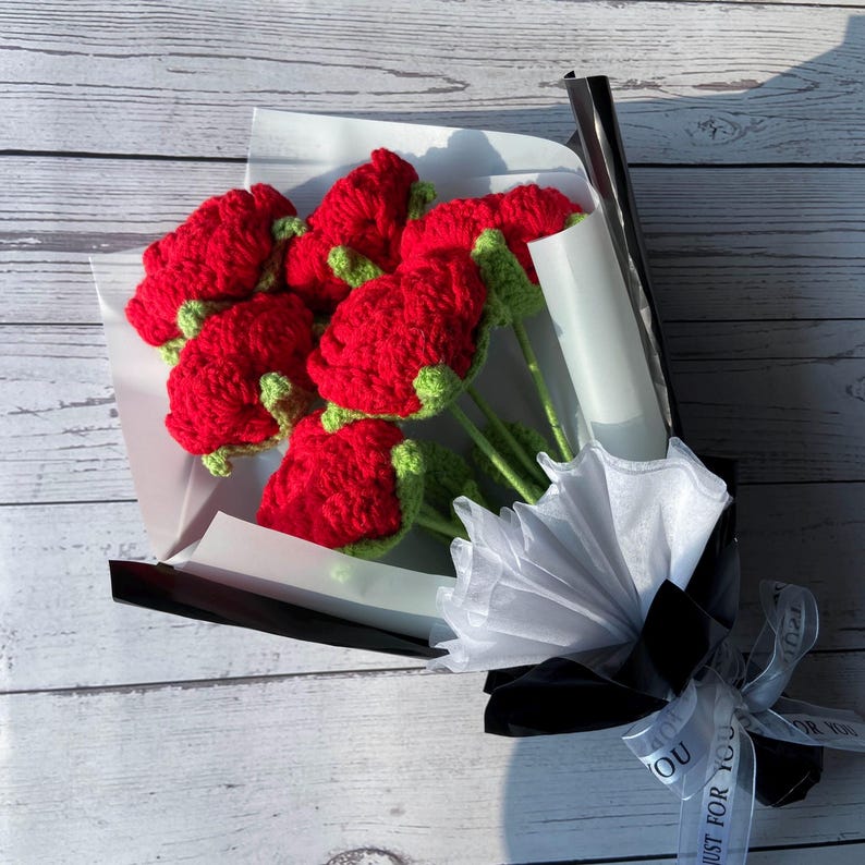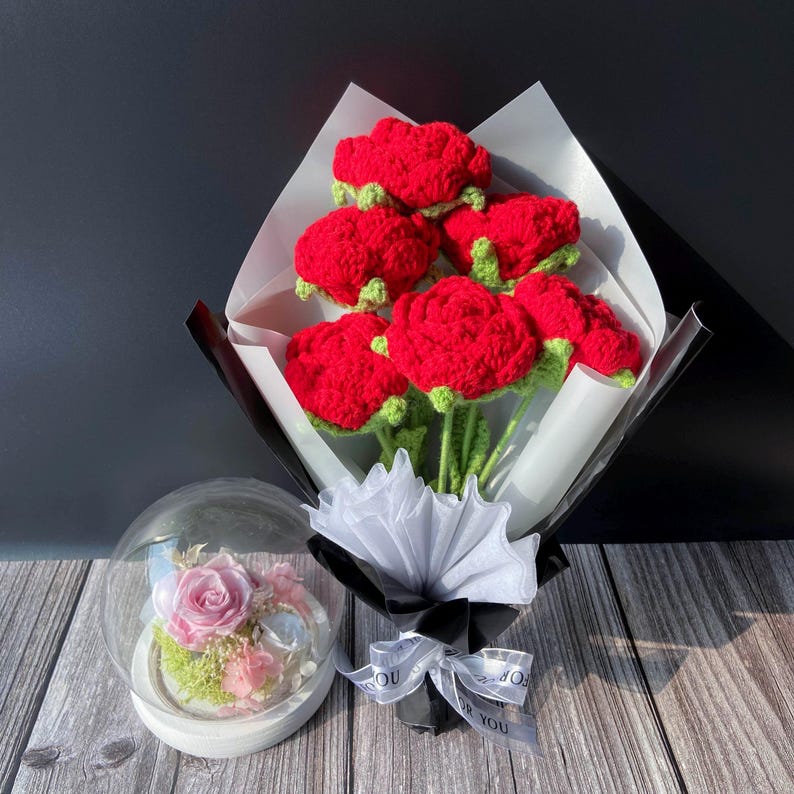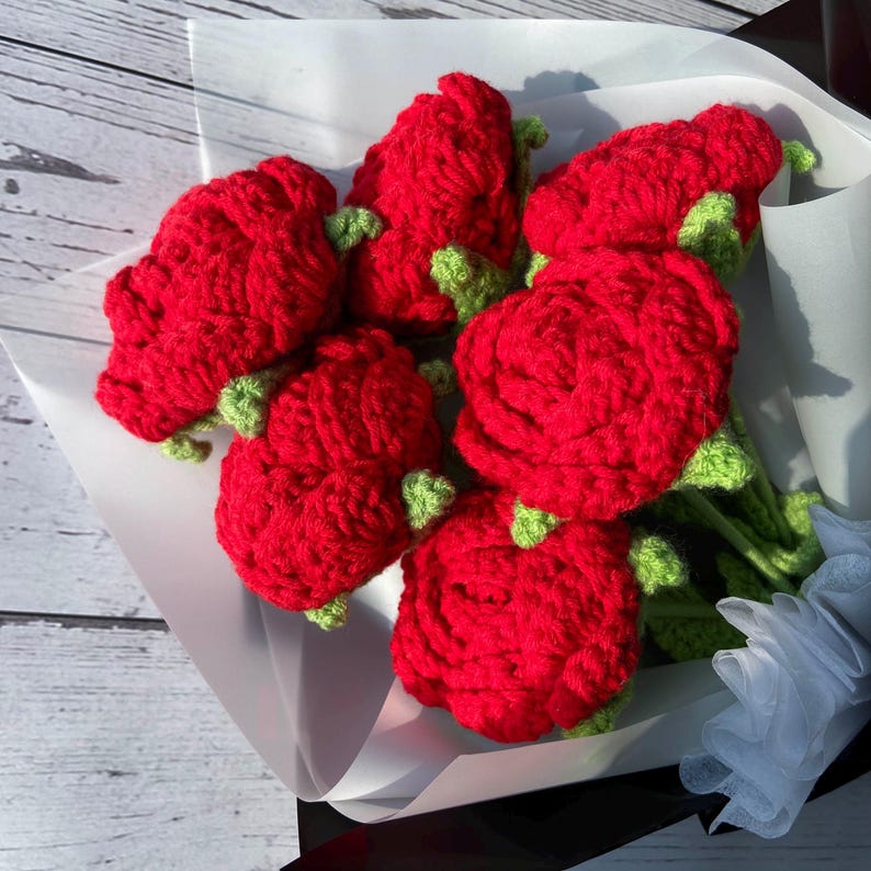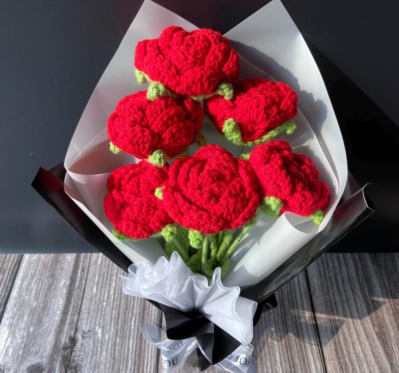 Tặng người thương một bó hoa hồng móc tay xinh xắn từ Knitwoolvn, thể hiện tình cảm chân thành và sự tinh tế. Mỗi bông hồng được làm thủ công tỉ mỉ, từng đường kim mũi chỉ đều thể hiện sự chăm chút, tạo nên vẻ đẹp quyến rũ và sang trọng. Hãy tưởng tượng: những cánh hoa hồng mềm mại, màu đỏ tươi rực rỡ, được sắp xếp khéo léo tạo nên một bó hoa rạng rỡ, tràn đầy sức sống. Không chỉ là một món quà, đây còn là một tác phẩm nghệ thuật nhỏ xinh, tô điểm thêm vẻ đẹp cho không gian sống.