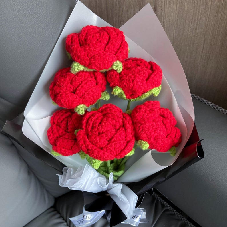 Mỗi bông hoa là một tác phẩm nghệ thuật nhỏ, thể hiện sự tỉ mỉ và tâm huyết của người thợ. Bó hoa hồng móc tay này sẽ là một món quà độc đáo, đáng nhớ và trân quý.