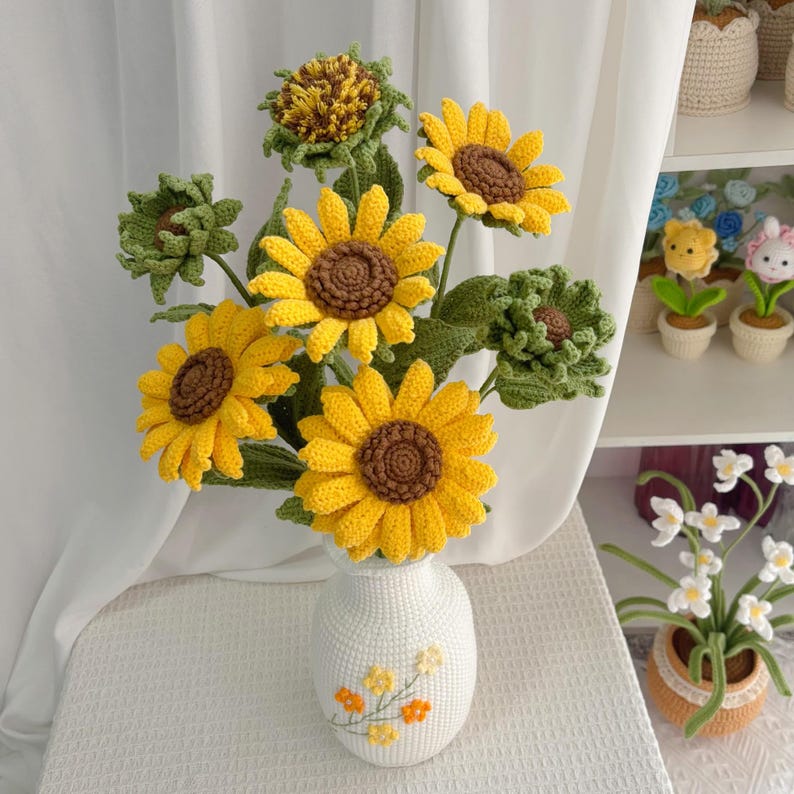 Được làm từ sợi cotton cao cấp, bông hoa hướng dương này không chỉ sở hữu vẻ đẹp tự nhiên, sống động mà còn bền bỉ theo thời gian. Những cánh hoa được đan móc tỉ mỉ, tạo nên kết cấu mềm mại, ấm áp, mang đến cảm giác thoải mái và gần gũi. Khác với hoa tươi, bó hoa này sẽ luôn tươi tắn, không cần chăm sóc, mang đến sự tiện lợi và tiết kiệm thời gian.