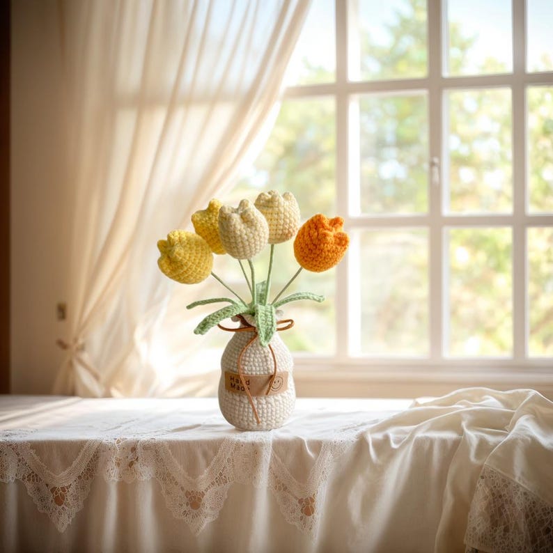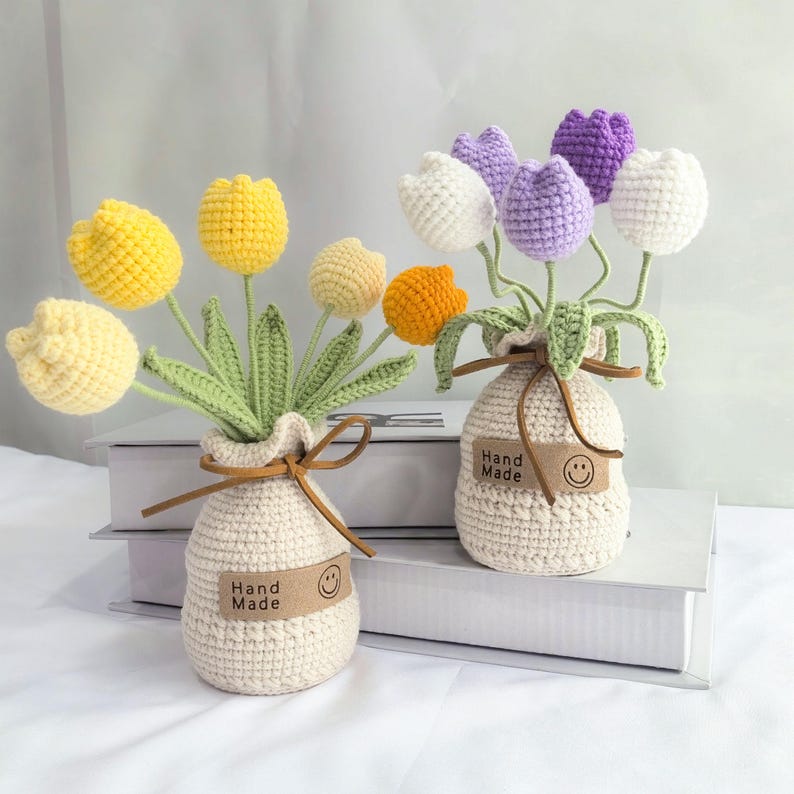 Hãy để những bông hoa Tulip móc len Knitwoolvn mang đến sự tươi mới và rạng rỡ cho không gian của bạn. Mỗi sản phẩm đều chứa đựng tâm huyết và tình cảm của người làm ra, hứa hẹn sẽ là món quà tuyệt vời và đầy ý nghĩa.